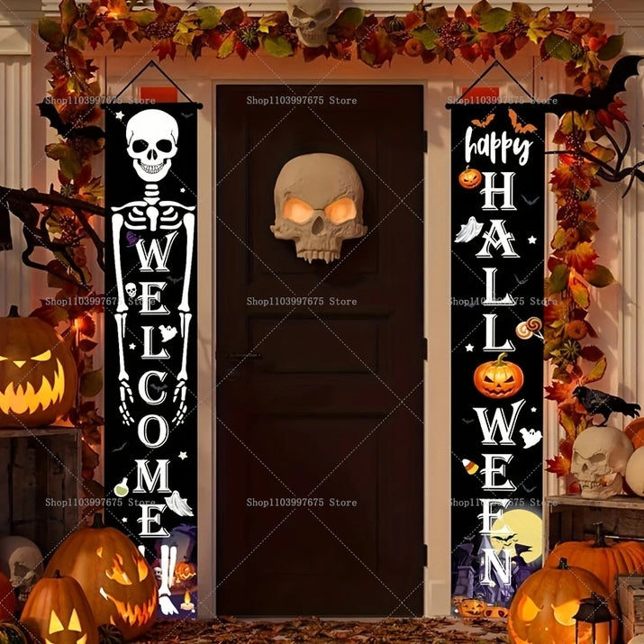 Halloween Decorations Outdoor Indoor Wellcome Banners Porch Hanging Signs for Front Door Outside Yard Garland Party Supplies